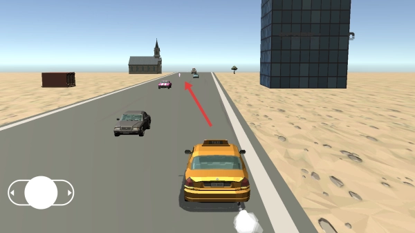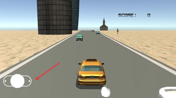 2、通过操控左侧摇杆来控制方向,避开绿色和粉色的车辆,沿着公路行驶,确保“score:0”状态下不发生撞车情况。