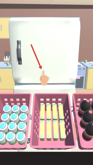 1、开局操作:点击冰箱门,开启收纳整理环节。