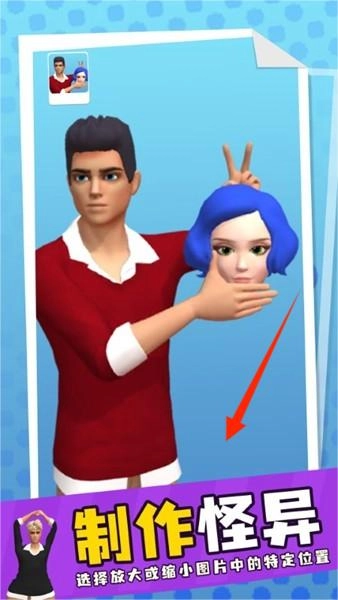 3、解压玩法 自由创作:玩家可借助拉伸、扭转五官的方式释放压力,随性打造趣味搞怪的形象,每一次互动操作都能带来满满的欢乐,尽情享受不受束缚的创意乐趣。