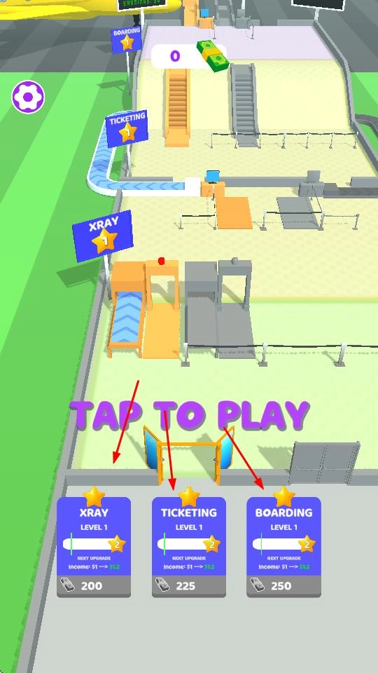 1、通过升级安检、值机、登机等设施,提高单设施收益,积累金币资源,扩大机场规模。