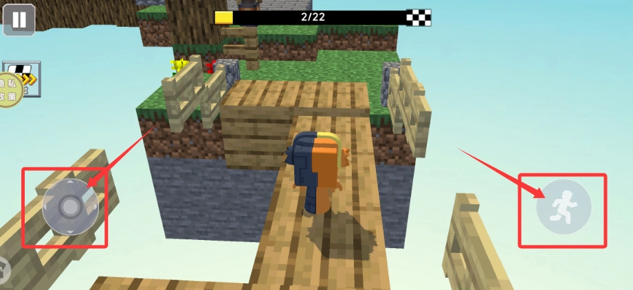 3、左下角的摇杆用于操控角色移动,右下角的按钮则负责控制角色跳跃。