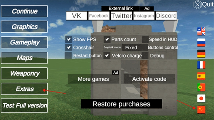 爆破物理模拟器手机版怎么设置中文