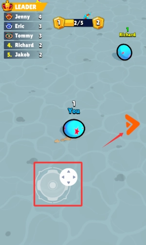 2、使用下方摇杆控制You角色移动,避开其他玩家追击。