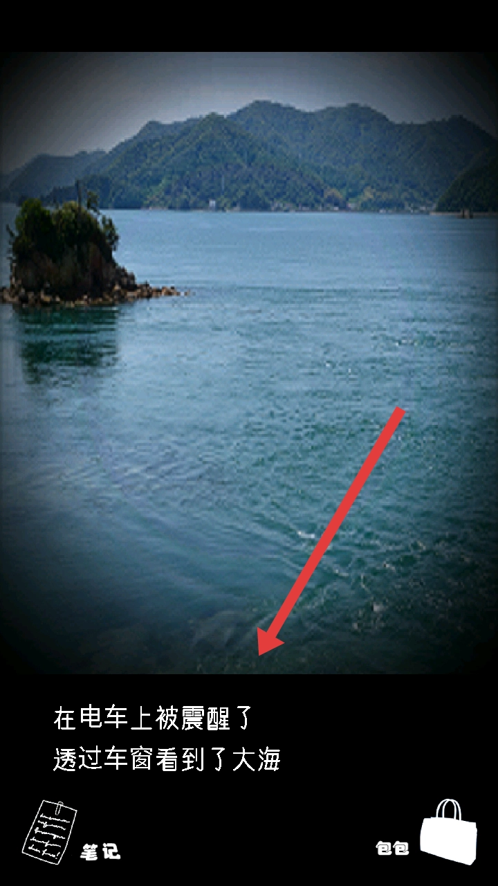1、在游戏的海边场景,需要点击屏幕任意位置,推进“电车上惊醒,眺望大海”的剧情叙事。