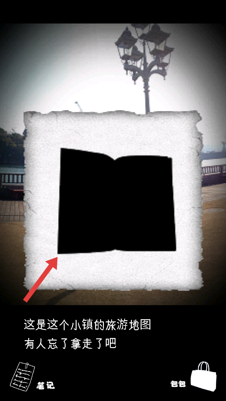 2、发现小镇旅游地图(黑色书本状),点击箭头指向的地图区域,调查线索,解锁场景信息。