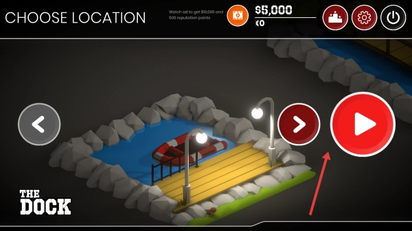1、点击主界面上的【红色播放按钮】,进入场景选择页面,挑选【THE DOCK】这类场景后,点击播放即可开始游玩。