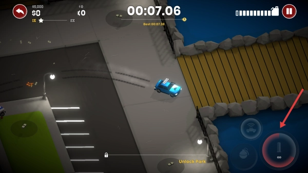2、在场景里驾驶车辆,顺着路线行驶,躲开警车,靠近现金自动收集,积累金额解锁内容。