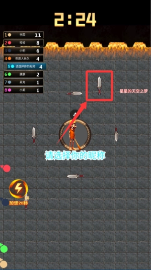 1、开局先控制角色快速拾取飞刀,提升初始战力,在前进过程中不断收集更多武器增强攻击力。