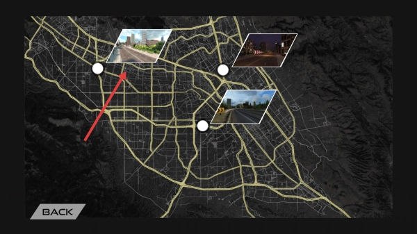 2、在地图界面选取包含道路场景的点位,以此确定想要挑战的赛道。