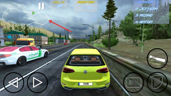 3、驾驶黄色赛车,根据小地图的指引,在公路上避开其他车辆行驶,完成赛道挑战。