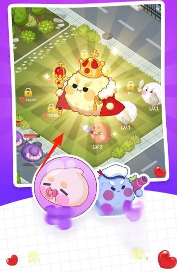 3、角色进阶后可解锁“皇冠绵羊”等特殊单位,将其与低阶怪物(LV.1、LV.2)搭配组合,构建兼具防御与进攻能力的阵容,以此推进关卡进程。
