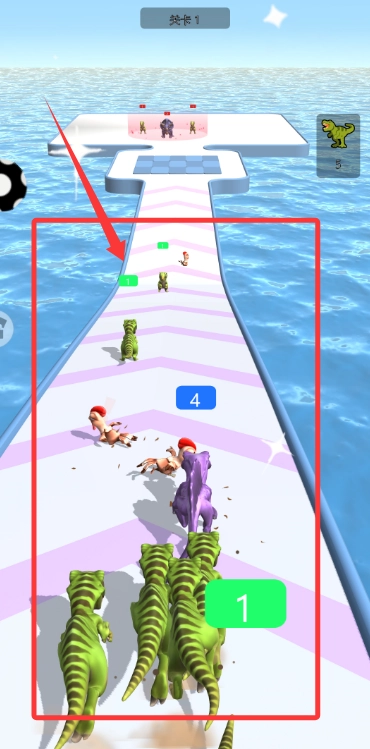 2、操作恐龙去吃掉更多的人,升级恐龙。
