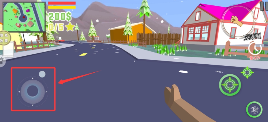 3、左下角的摇杆用于操控角色移动,右下角的按键负责控制角色对敌人发起攻击。