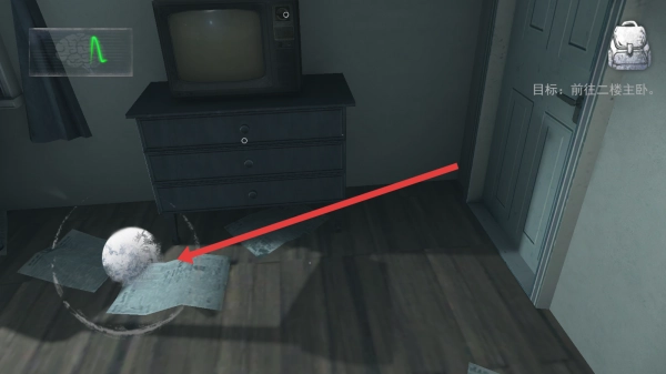 2、探索房间,按箭头指引,拾取地面纸团(可能含线索),留意环境细节,推进剧情。