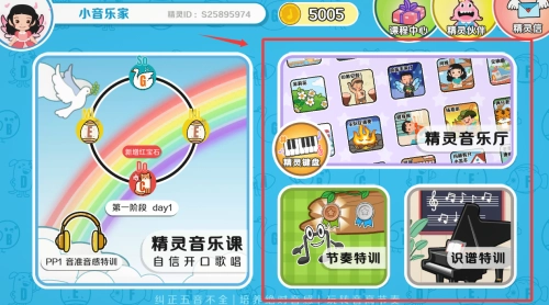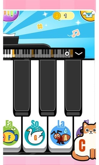 1、精美的卡通画面风格带来视觉享受,梦幻般的音乐世界充满童趣,每个音符按键都设计成可爱的精灵造型,弹奏时会绽放独特的光影特效