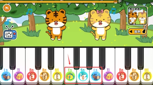 3、根据红色箭头提示,点击Fa琴键完成两只老虎旋律弹奏。
