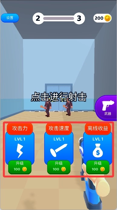 1、进入游戏后点击屏幕进行射击开始游戏。