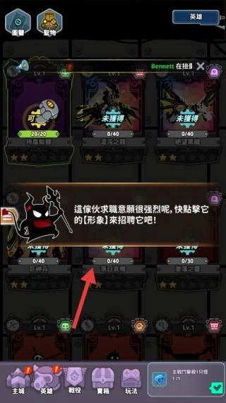 2、英雄招募进入“英雄”界面,用“求贤令”招募角色(矿工、末日兽),消耗道具提升图鉴进度。
