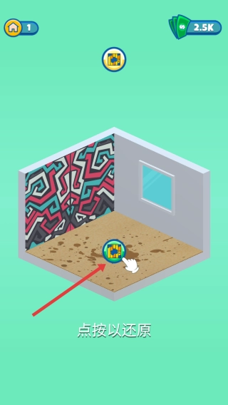 1、打开房间修复界面,点击地面上的彩色物品,按照“点按以还原”的提示操作,即可启动修复流程。