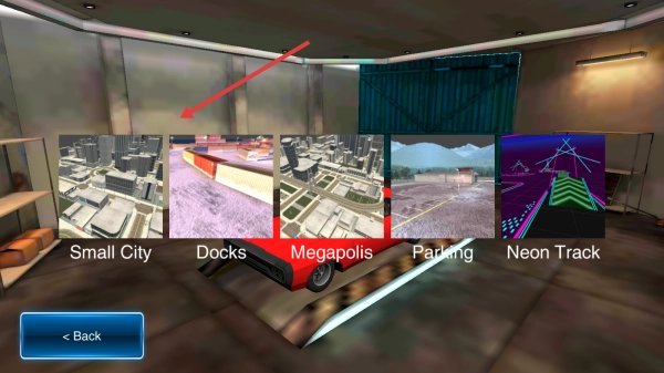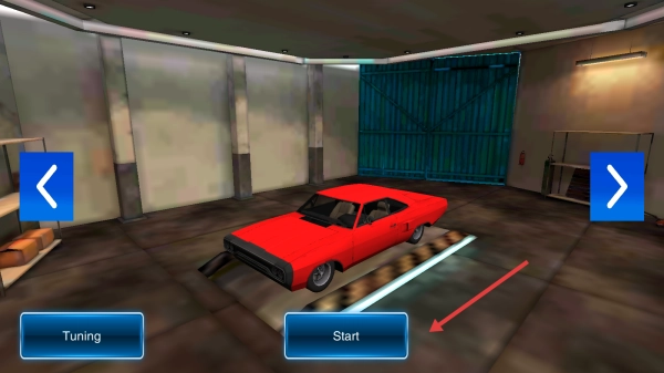 1、在车库中选择红色汽车,点击【Start】按钮,即可进入赛道选择界面。