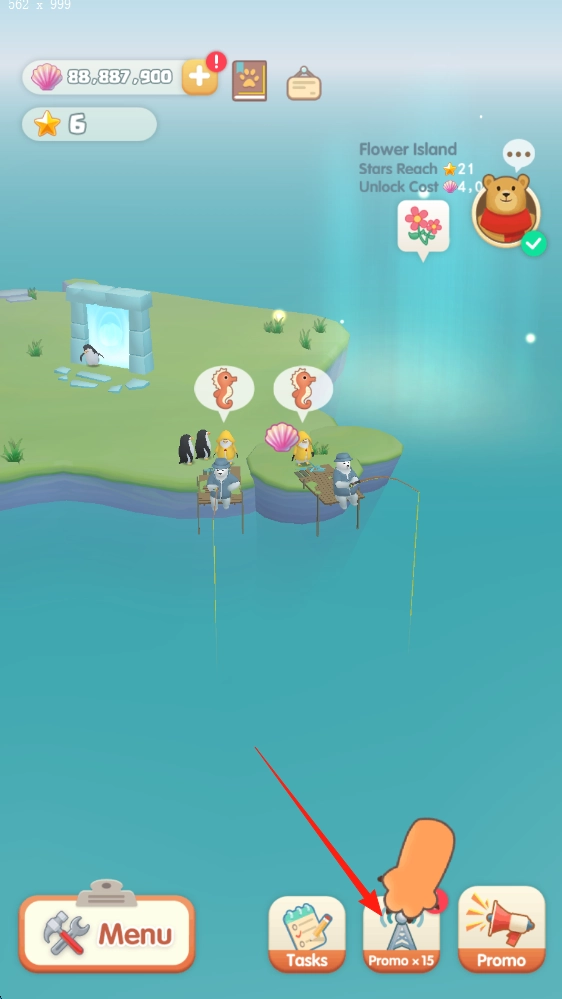 3、完成设施解锁,点击任务,推进流程,或用促销,加速岛屿发展。