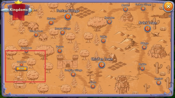 3、世界地图选红框【Altea】王国,派军队占领,拓展领地,获取资源点,增强王国实力。