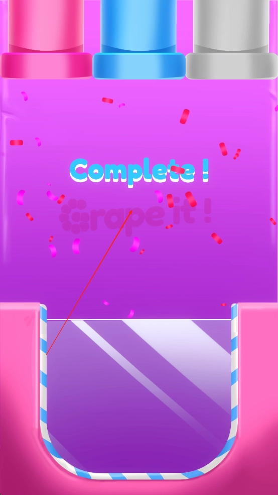 3、在规定时间内精准完成所有颜色葡萄球的分类就能通关,通关后可以解锁新的吸附道具以及更复杂的彩色小球组合关卡。