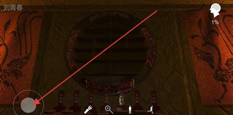 2、在神秘房间(比如供桌、圆形机关所在的地方),借助界面工具(手电筒、放大镜)进行互动,解锁隐藏的线索,以此推动探案的进度。