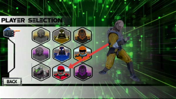 2、点击红色箭头所指的红色外观角色图标,完成游戏角色的选择,选定后即可进入后续的操作说明与战斗筹备环节。