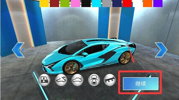 进入游戏后,先在车库里挑选好你想驾驶的车辆,接着点击继续按钮。