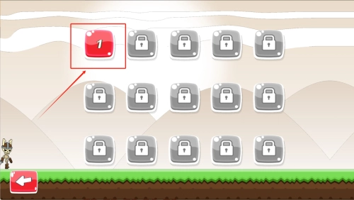 1、在关卡选择界面,点击被红色框标注的“1”号初始关卡即可进入;后续灰色锁定的关卡需要先完成前面的挑战才能解锁,左下角的角色形象会随着游戏进度发生变化。