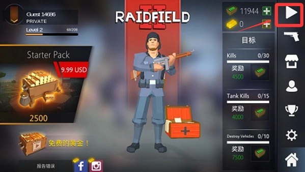 1、进入游戏后点击右上角的按键即可开始游戏。