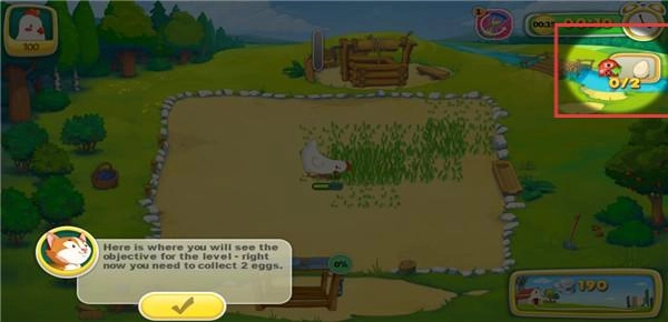 3、在这里你能看到该关卡的目标,当前你需要收集2个鸡蛋,收集完毕后即可过关。