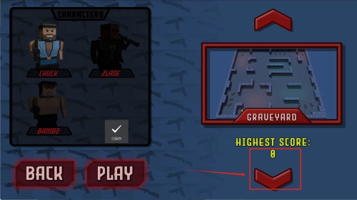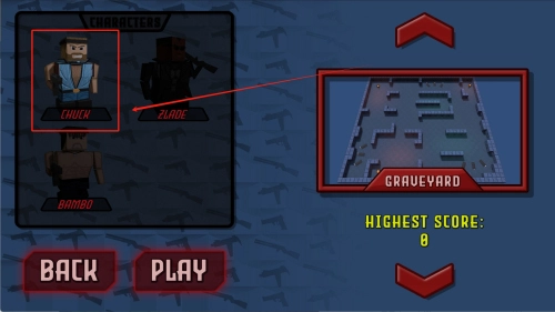 2、进入角色选择界面后,可通过方向键切换查看Chuck、Zlaode等角色,选定目标角色后点击“PLAY”按钮,即可进入“GRAVEYARD”墓地关卡开启战斗。