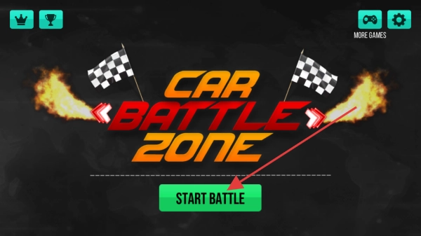 2、进入【CARBATTLEZONE】主界面后,点击【STARTBATTLE】按钮,即可开启赛车对战模式,为接下来的竞技环节做好准备。