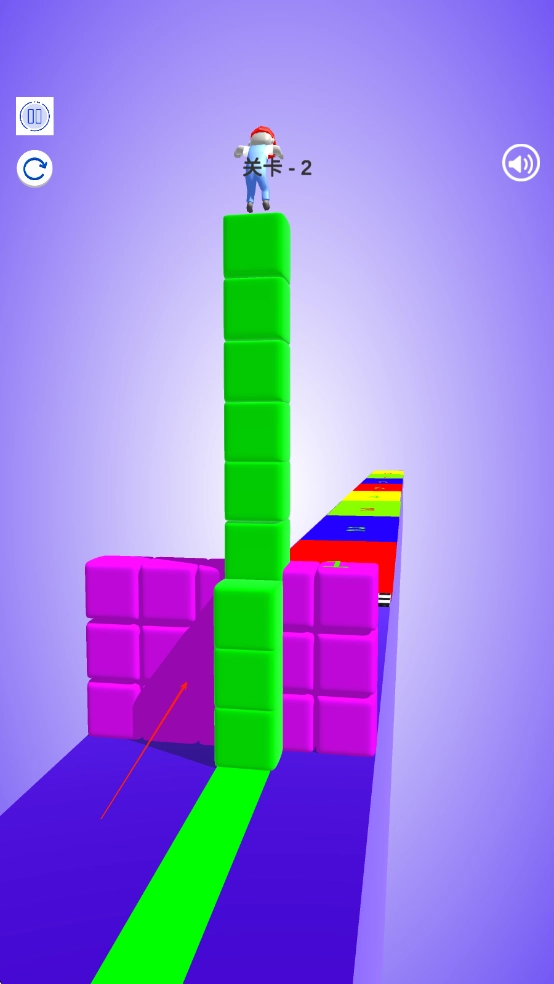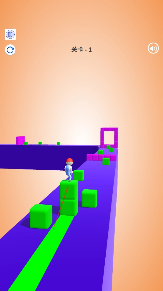 进入赛道后,操控角色左右移动来收集沿途的方块;滑动屏幕可让角色加速奔跑;当接近障碍物时,点击屏幕就能用收集到的方块搭建出通行的路径。