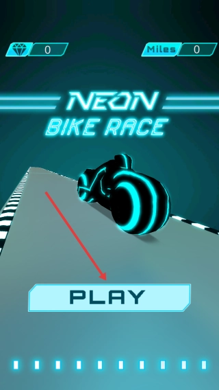 1、点击【PLAY】按钮,进入霓虹摩托赛(Neon Bike Race)游戏,操控荧光摩托进行驾驶。