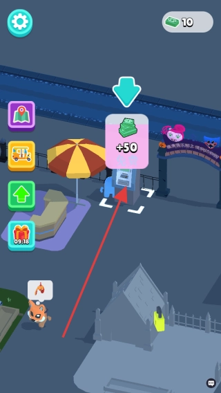 3、找到ATM机,控制角色移动到它旁边,点击带有“+50”字样的标识,就能领取对应的货币奖励。这些积累起来的资金,可以用来解锁新建筑、升级现有设施,从而推动公园的发展进程。