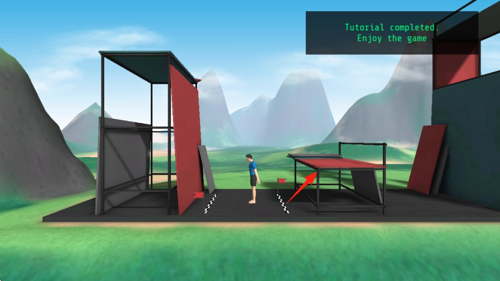 3、平稳降落在红垫(红箭头标识处),即可完成教程(Tutorial completed),解锁正式关卡。
