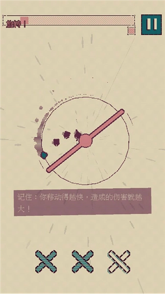 2、你用命趟过障碍物后如果能够获得一波甚至多波输出到最大伤害的机会(说白了就是你移动的空间,有足够的空间才有伤害),那么可以考虑卖命。我没记错的话,剪切那关在最后会出现一条切割圆的弦(的障碍物)将你困在圆的劣弧(就是小于半圆的弧),你的活动范围非常的小,并且没有足够的空间将伤害打到最大,但是如果你拿命越过那个障碍物,你就会获得一个优弧(大于半圆)的活动空间,你就有充足的空间打出(好几波)最大伤害。