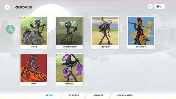 丰富多样的火柴人皮肤可供玩家选择,可以打造自己喜欢的火柴人角色形象。