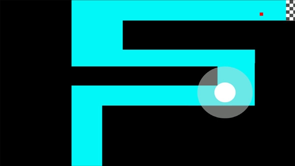 2、游戏主角是一个小点,通过控制它不碰到两边墙壁到达终点即为为胜利。