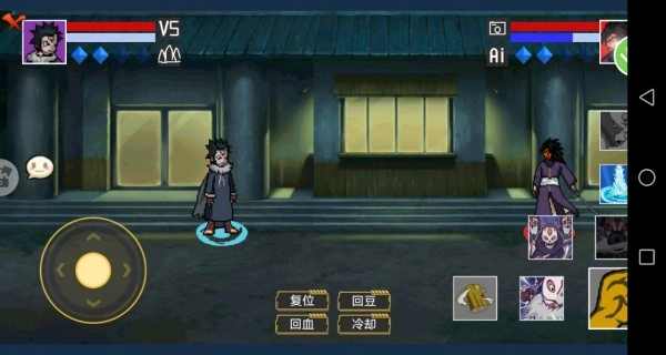2、高度还原原始技能,像螺旋丸、千鸟等技能在像素画风中呈现,搭配连招与必杀技,打造爽快战斗体验。