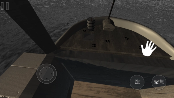 4、当处于轮船甲板场景,发现脚印之类的线索时,点击画面里的手掌交互区域,就能触发线索收集或推动任务进展。
