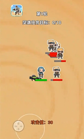 进入游戏后,挑选完战士就能开启冒险之旅,借助虚拟摇杆可以灵活操控角色移动,同时按下射击按钮就能对周围的敌人发起攻击。