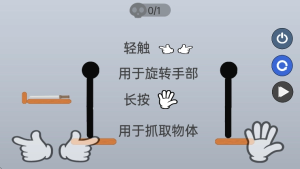 3. 如以下图示,进入关卡后,点击画面左侧的按钮可操控火柴人的手臂,点击右侧按钮则能控制手掌握住武器。