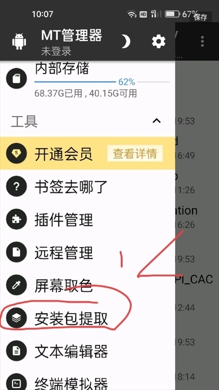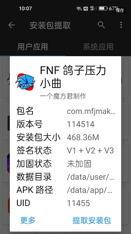 4、长按进入提取安装包界面。