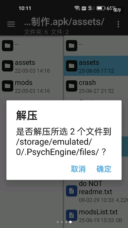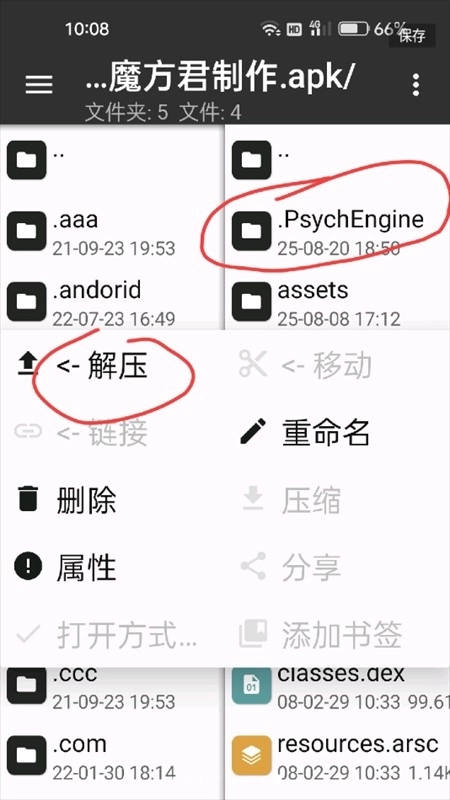 8、对psychengine文件长按并解压。