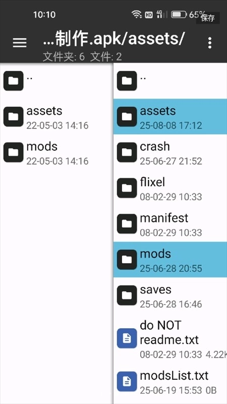 11、再进入到文件中去,找到assets和mod。