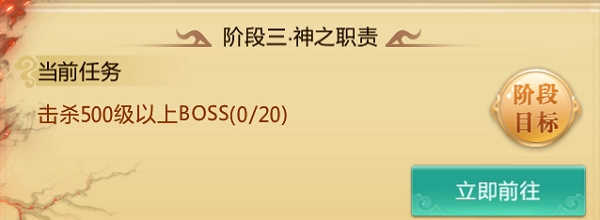 3、神之职责:消灭20只等级达到500级及以上的BOSS。
